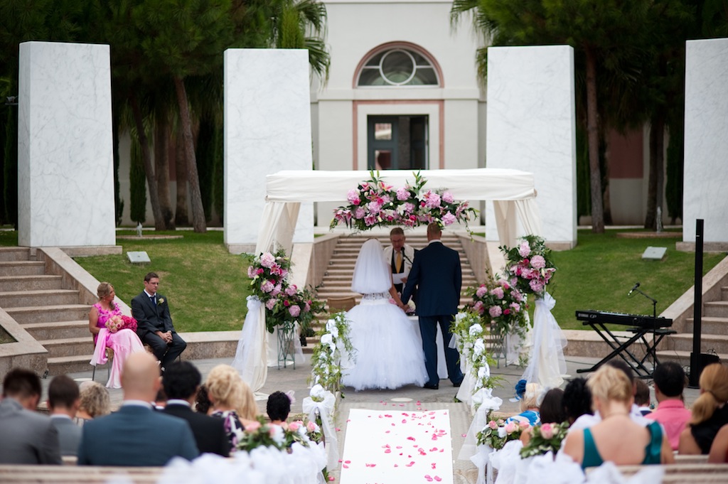 Fuchsia is perfect for a bright sunny outdoor Mediterranean wedding theme and reflects the colours of the local surrounding flowers from the brightly coloured bouganvilla to the vibrant hibiscus.